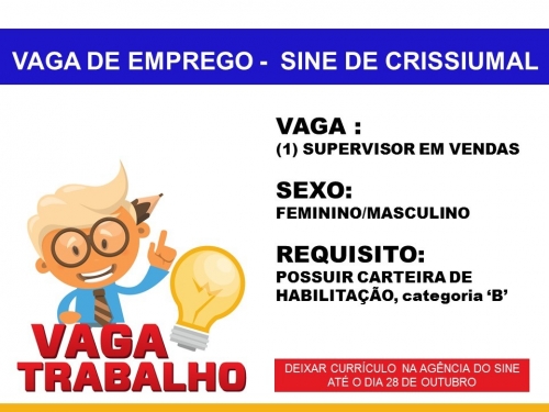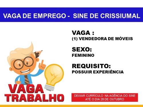 Geral - 24/10/2019 - Vagas de emprego junto ao SINE de Crissiumal