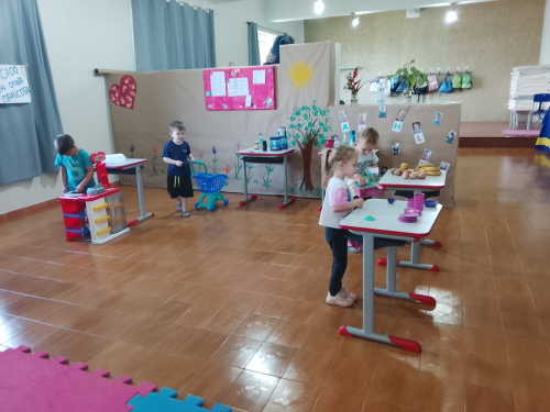 As crianças interagiram com a temática de forma lúdica por meio da contação de história, passeio a um comércio local com a intenção de comprar produtos para a produção de um lanche, estimulando o pedido da Nota Fiscal, montagem de um sanduíche com os produtos comprados e por fim brincaram em um mini mercado montado na sala de aula, em que retratou a realidade podendo as crianças vivenciar a compra e venda de produtos, interagindo com dinheiro de brinquedo, cartão de crédito e nota fiscal.