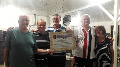 Antes da partida, uma homenagem. Ex-dirigentes do Tupi FC, como Carlos Willy Grun, o presidente do Legislativo Paulo Moacir Haas, Elson Sturmer, Adeli Gauer, Elpidio Kauffmann, Elio Lampert, Claudio Dorst, entre outros, realizaram na última quinta-feira no Bar do Tobata um jantar de despedida ao ex-zagueiro rubro-negro. O jantar contou com a presença dos irmãos de Arno que residem em Crissiumal, o ex-atacante Lauro e o ex-goleiro Beto, campeão do mundo em 1983.
