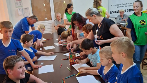 Os voluntários da John Deere organizaram a atividade, onde inicialmente conversaram com algumas vovós do Lar que contaram um pouco da sua história de vida, após isso organizaram um pequeno teatro onde contaram essas histórias para as Crianças da ABEMEC. As crianças após a contação de história fizeram um desenho da história que mais gostaram e esses desenhos no final foram entregues aos vovôs que moram no Lar.
