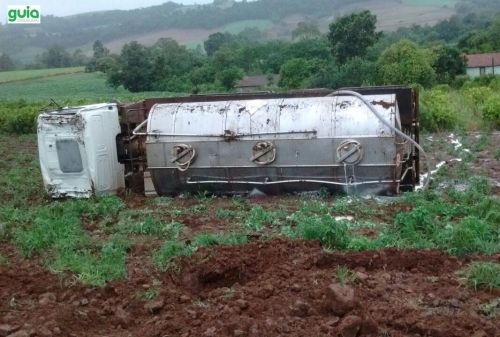 Já na manhã deste domingo um caminhão de leite tombou na localidade de Lajeado Tigre. Mesmo não apresentando lesões visíveis, o motorista foi encaminhado para exames.