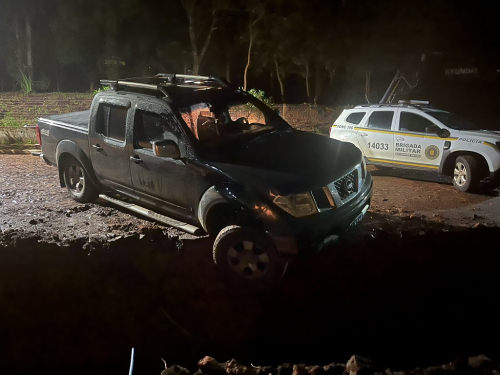Caminhonete caiu em vala de drenagem com uma das rodas