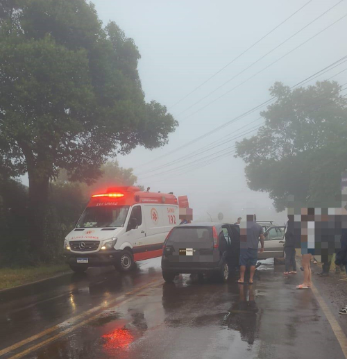 Colisão envolvendo um Fiat Uno e um Ford Fiesta