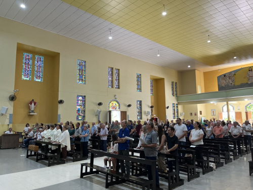A missa aconteceu na Igreja Matriz Três Santos Mártires das Missões de Crissiumal, seguida de almoço no Salão Paroquial.