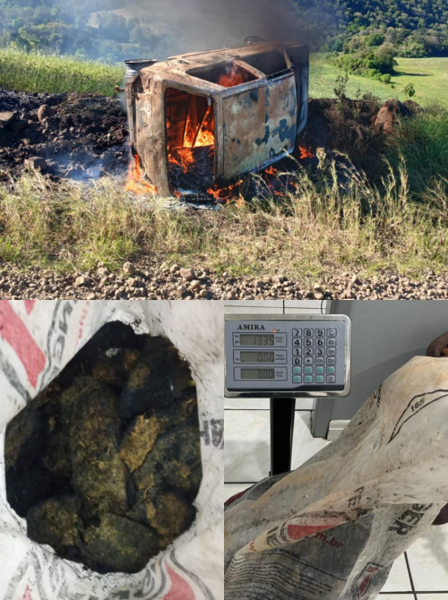 Alguns quilômetros adiante, o motorista abandonou e incendiou o automóvel, com a droga em seu interior.