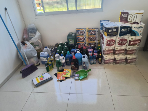 As doações arrecadadas pelo Sindicato junto à comunidade foram entregues durante a tarde. Entre elas, destacam-se: 150 litros de produtos de limpeza, 25 kg de farinha de trigo, 1 cobertor, 7 mantinhas de casal, além de panos de chão, esponjas, sabonetes, vassouras e rodo.