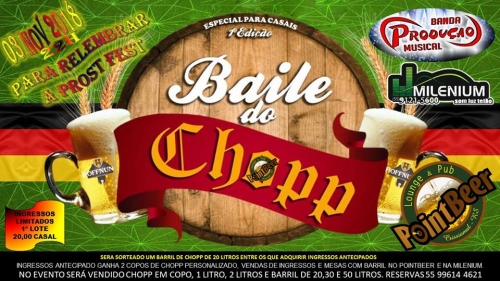 O POINTBEER CONVIDA OS CASAIS PARA A 1ª EDIÇÃO DO BAILE DO CHOPP A SE REALIZAR DIA 03 DE NOVEMBRO, SÁBADO, COM INICIO AS 22H.