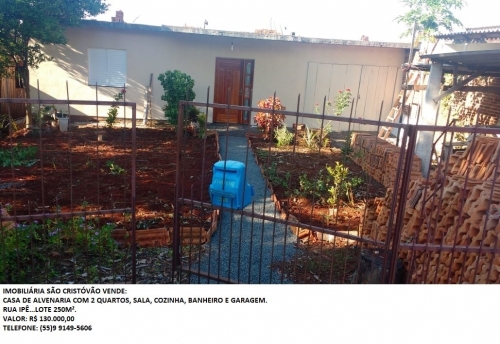 Imobiliária São Cristóvão vende casa de alvenaria com 2 quartos, sala, cozinha, banheiro e garagem, na Rua Ipê. Valor R$ 130.000,00
