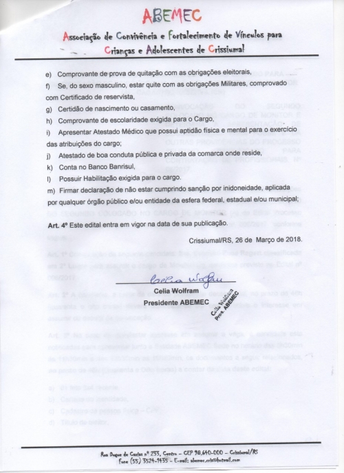 Editais - 26/03/2018 - Edital de convocação do segundo colocado para Monitor da ABEMEC