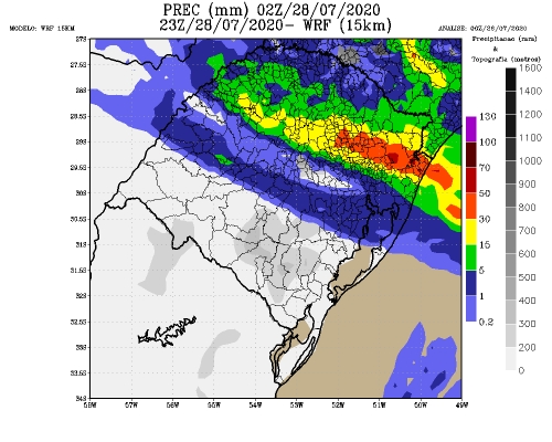 Na figura o acumulado de chuva durante a terça-feira 28/07.