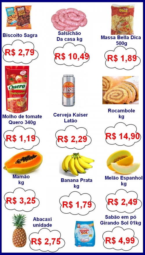 Super Econômico, Rua XV de Novembro, telefone (55) 3524-1638.