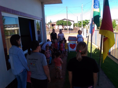 As comemorações iniciaram-se já no dia 14 de novembro, onde educadores, funcionários e todas as crianças se reuniram no espaço central da escola, oportunidade em que a diretora Zenaide Hentges fez um breve relato sobre a história da Patrona Neli Ilse Thomé que era professora e Diretora, ainda, lembrou da importância de agradecer e valorizar a escola que temos.