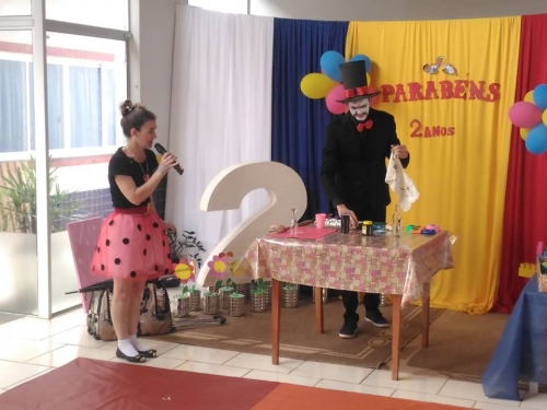 As crianças abrilhantaram a manhã com apresentações musicais e o educador Álvaro Specht realizou incríveis mágicas, com a participação da pedagoga Delci Hentges, provocando muitas gargalhadas e divertindo a todos.