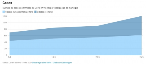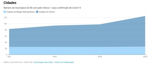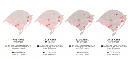 Em 8 de abril, os municípios de fora da Região Metropolitana concentravam apenas 36,66% do total de casos no Estado, o que demonstra um crescimento não só no número de cidades como também no total de casos.
