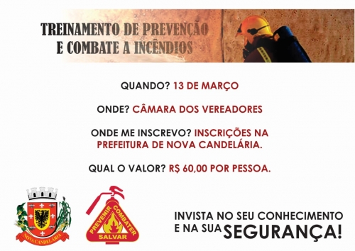O curso em Nova Candelária será no dia 13 de março, na Câmara de Vereadores. A inscrição custa R$ 60,00 e deve ser realizada na recepção da Prefeitura de Nova Candelária.