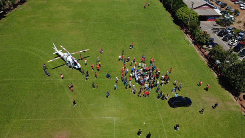 O helicóptero da Brigada Militar do RS pousou na sede do Flamengo de Zona Grun às 13h10min, onde em 41 minutos, Eduardo Leite foi calorosamente recebido, com presentes da Administração Municipal, música da Banda Marcial Municipal, entre outros agrados. Também percorreu cerca de 02 quilômetros da obra em direção a Esquina Uruguai, ao lado do prefeito Nedel e do diretor do DAER, engenheiro Luciano Faustino.