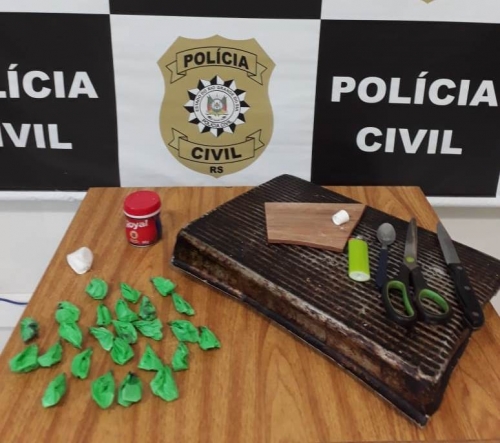 A prisão em flagrante ocorreu no distrito de Alto Uruguai, Tiradentes do Sul/RS. Na residência da mulher os policiais apreenderam aproximadamente 25 gramas de cocaína (uma pedra de aproximadamente 10 gramas e 15 gramas fracionadas em 25 buchas).