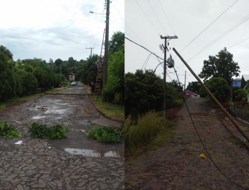 Mas o principal transtorno que chegou à redação do Guia Crissiumal até às 18h15min, é de danos em postes de internet. O internauta Laércio Hammes fotografou na Rua Celeiro três postes de madeira danificados. Dois caíram por completo, já o outro ficou pendurado na rede. Os mesmos