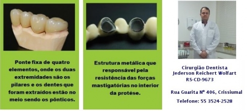 A melhor alternativa para recuperar a estética e função do paciente ainda é a ponte fixa metálo cerâmica.