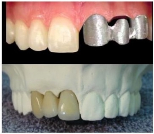 Esta prótese consiste em uma estrutura metálica que é responsável pela resistência estrutural e o componente cerâmico que reconstrói a forma anatomia, estética e função dos dentes envolvidos.