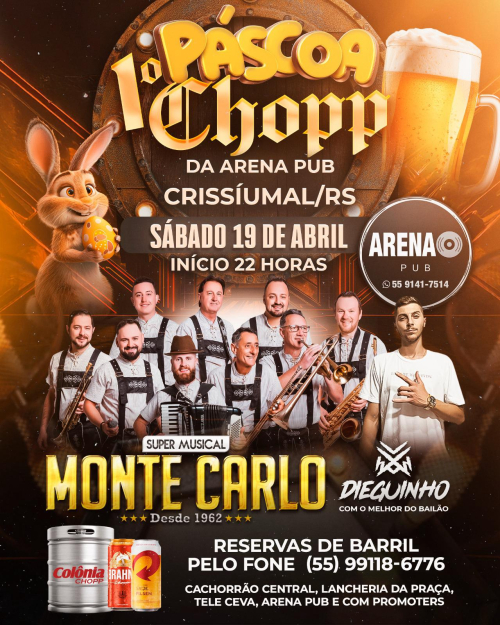 1ª Páscoa Chopp da Arena Pub em Crissiumal. Dia 19 de abril, início as 22h00min.