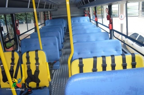 Trata-se de um ônibus escolar rural, com capacidade para transportar 59 estudantes sentados. O veículo possui, ainda, a plataforma de “embarque fácil”, para alunos com necessidades físicas especiais.
