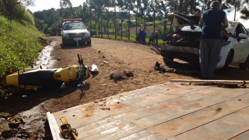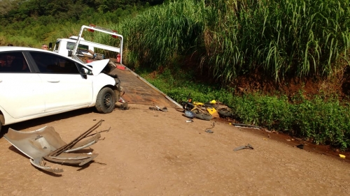 A colisão envolveu um Ford Fiesta e uma motocicleta Honda Twister