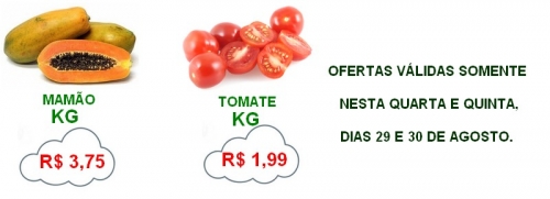 Ofertas válidas somente nesta quarta e quinta, dia 29 e 30 de agosto.