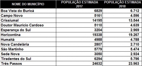 O mesmo acontece com vários municípios da região pesquisados pelo Guia Crissiumal, veja no quadro abaixo montado pelo nosso site com base em informações do IBGE: