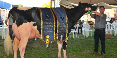 A vaca Penz 13 Jojo Al Gw Atwood Te, da Cabanha Penz em parceria com a Santa Clara, ambas de Humaitá, foi escolha a grande Campeã da Raça Holandês, no julgamento que aconteceu nesta quinta-feira na pista 8 do Parque de Exposições Assis Brasil.