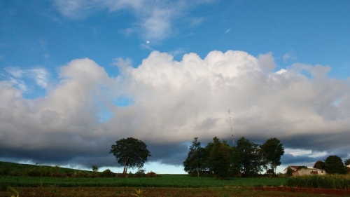 Durante a tarde desta sexta a temperatura aumentou e voltou a trazer algumas nuvens de chuva sobre a região, que até trouxeram pancadas isoladas, como mostra a foto do topo.
