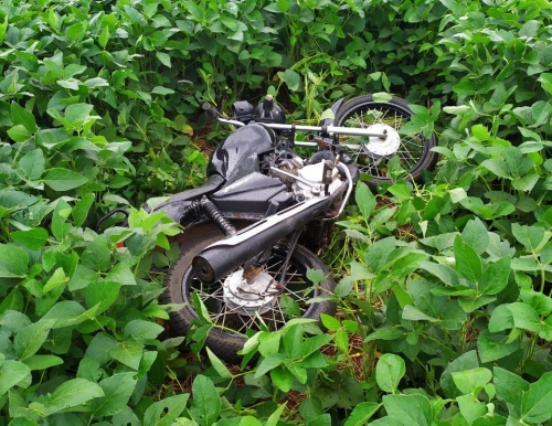 Na manha desta Quinta-feira a motocicleta foi localizada em meio a uma lavoura de soja na rua XV de Novembro e será posterior restituída ao seu proprietário.
