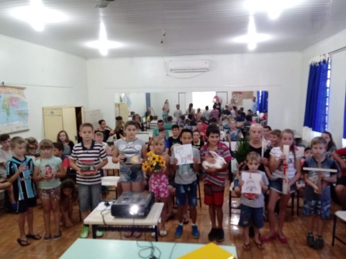 Na Semana Santa, a escola realizou pesquisa e reflexão sobre a Páscoa durante a semana, envolvendo: Símbolos e significados, coleta e pintura das casquinhas,confecção dos cestinhos, caça ao ninho, celebração pascal com o professor e ministro da localidade sr. Luiz Schumacher, lanche e distribuição dos pacotinhos. A direção parabeniza a toda a comunidade escolar, pela participação e envolvimento nas atividades propostas.