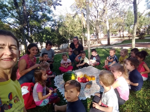 Através de fantoches de frutas, canções, passeios, histórias, observações, brincadeiras e troca de ideias, diversos conteúdos relacionados a temática foram desenvolvidos. Houve a participação das famílias contribuindo com frutas da época para partilhar.