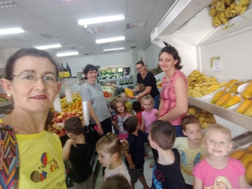 Com o auxílio do transporte escolar foi possível realizar o passeio no comércio local. Neste, cada criança e educadora comprou com seu próprio dinheiro sua fruta preferida, sendo que as compras foram bastante diversificadas, entre elas: abacaxi, banana, maça, kiwi, caqui, tomate, melancia e morango.
