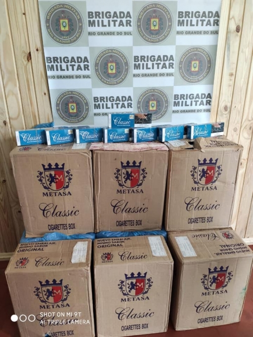 A Brigada Militar apreendeu uma grande quantidade de cigarros contrabandeados no interior de Nova Candelária na manhã deste domingo (30/08).