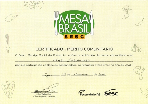Foi realizado na noite dessa quinta-feira, dia 29 de novembro em Ijuí, a cerimônia de adesão oficial da APAE de Crissiumal, ao programa MESA BRASIL.