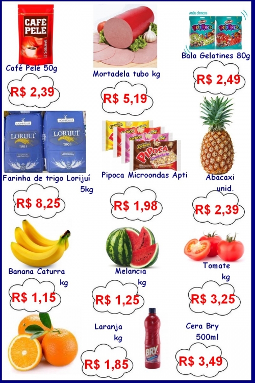 Super Econômico, Rua XV de Novembro, telefone (55) 3524-1638.