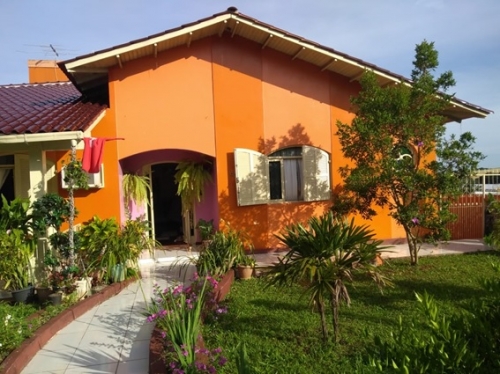 Casa de alto padrão, com 285m², toda plana, com chapa e telha esmaltada toda nova, com 4 banheiros, 4 quartos mais uma suíte, salão de festas churrasqueira elétrica, 2 portões eletronicos, caixa de água de 3.000 litros, garagem para 3 carros, ficam diversos móveis sob medida e o terreno todo em terra vermelha, com 1.000m² (20x50), localizado na Av. Santa Rosa, n° 947, à 50 metros do posto de saúde. No valor de R$ 430.000,00.