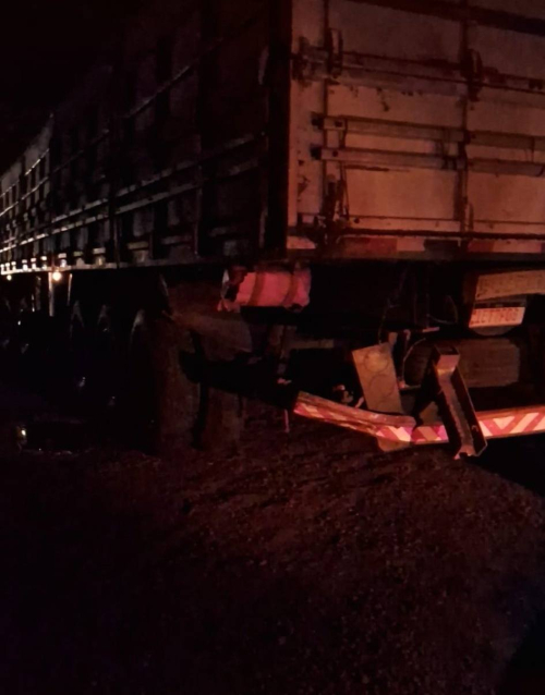 No local conhecido como cemitério dos degolados, próximo a Estância de Rodeios Nerci Libertato da Conceição um veículo VW Gol colidiu na parte traseira de uma carreta. O Gol ainda atingiu um Focus Sedan e uma Camionete.