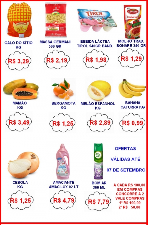 O Super Econômico comunica que na próxima sexta-feira, dia 07 de setembro, feriado terá atendimento somente pela parte da manhã, no horário das 08:30 as 11:00 horas.