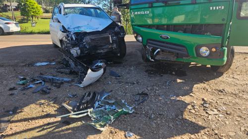 Colisão traseira envolveu uma motocicleta e uma caminhonete Hilux