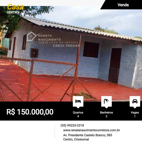 Rua XV de Novembro, no Centro de Crissiumal, fone (55) 99733-1123