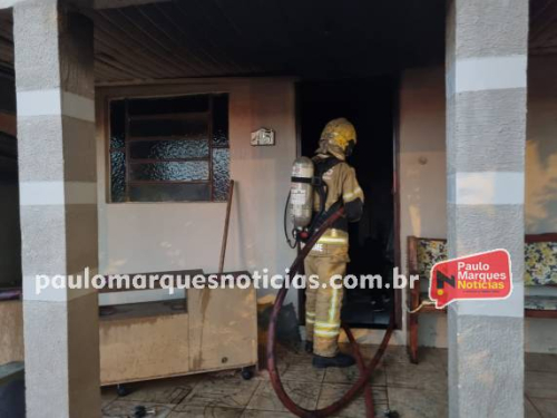 Fogo atingiu uma casa de alvenaria no bairro GuaÃra na tarde desta quarta-feira
