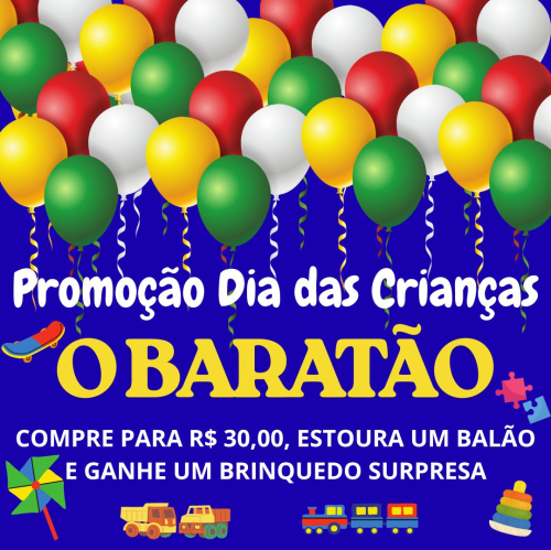 Compras acima de R$ 30,00, estoura um balão e ganha um brinquedo surpresa.
