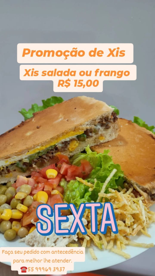 Xis salada ou frango por apenas R$ 15,00