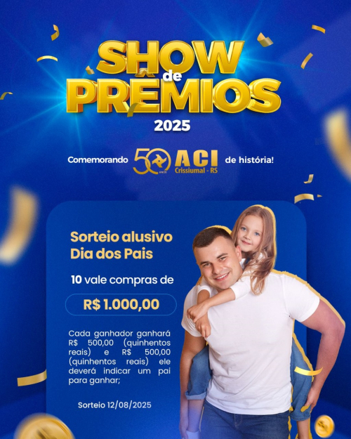 Serão 10 vales-compras de R$ 1.000,00. Guia Crissiumal transmite ao vivo