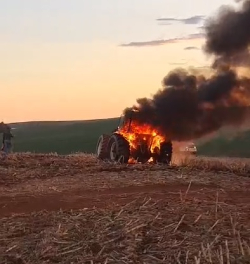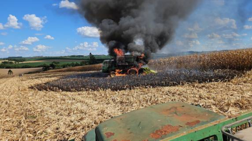 Fogo atingiu maquinário durante a colheita de milho na localidade de Progresso