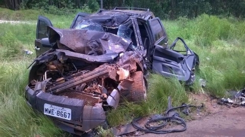 O acidente aconteceu na RS 569 e envolveu dois carros de passeio e um caminhão