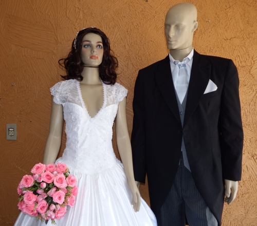 Vestidos a partir de R$ 350,00, incluindo acessórios e vestido de aia
